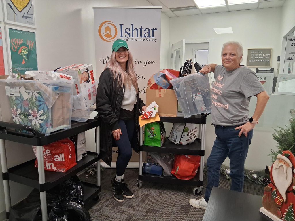 The donations included a wide range of thoughtful items—hygiene, hair care, and skin products; bags; baby blankets; diapers; clothing; mugs; shoes; and non-perishable food items. And of course, Andi also brought a highly prized selection of gift cards, which will allow our clients to purchase specific items they need most. Many of these contributions will be included in the welcome kits we are preparing for women and families entering New Roots Second-Stage Housing units in the new year.